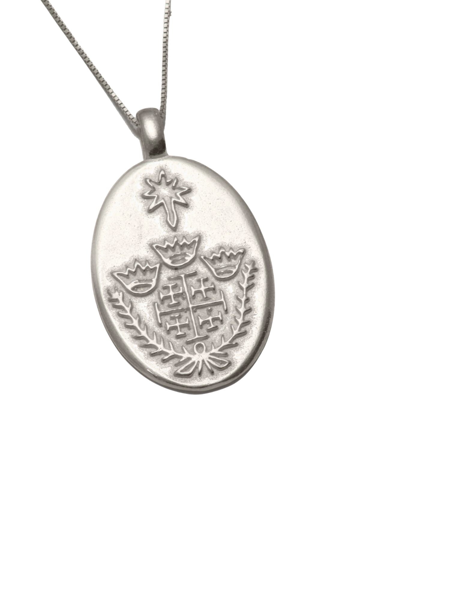 This Sterling Silver Jerusalem Cross Pendant is a handmade piece inspired by the original 350-year-old stamp used by the Razzouk family. The design features the historic Jerusalem Cross, once chosen by Crusaders, Knights, and pilgrims as a mark of their journey and service in the Holy Land. Traditionally tattooed on the forearm, it symbolized faith, dedication, and a physical connection to Jerusalem.